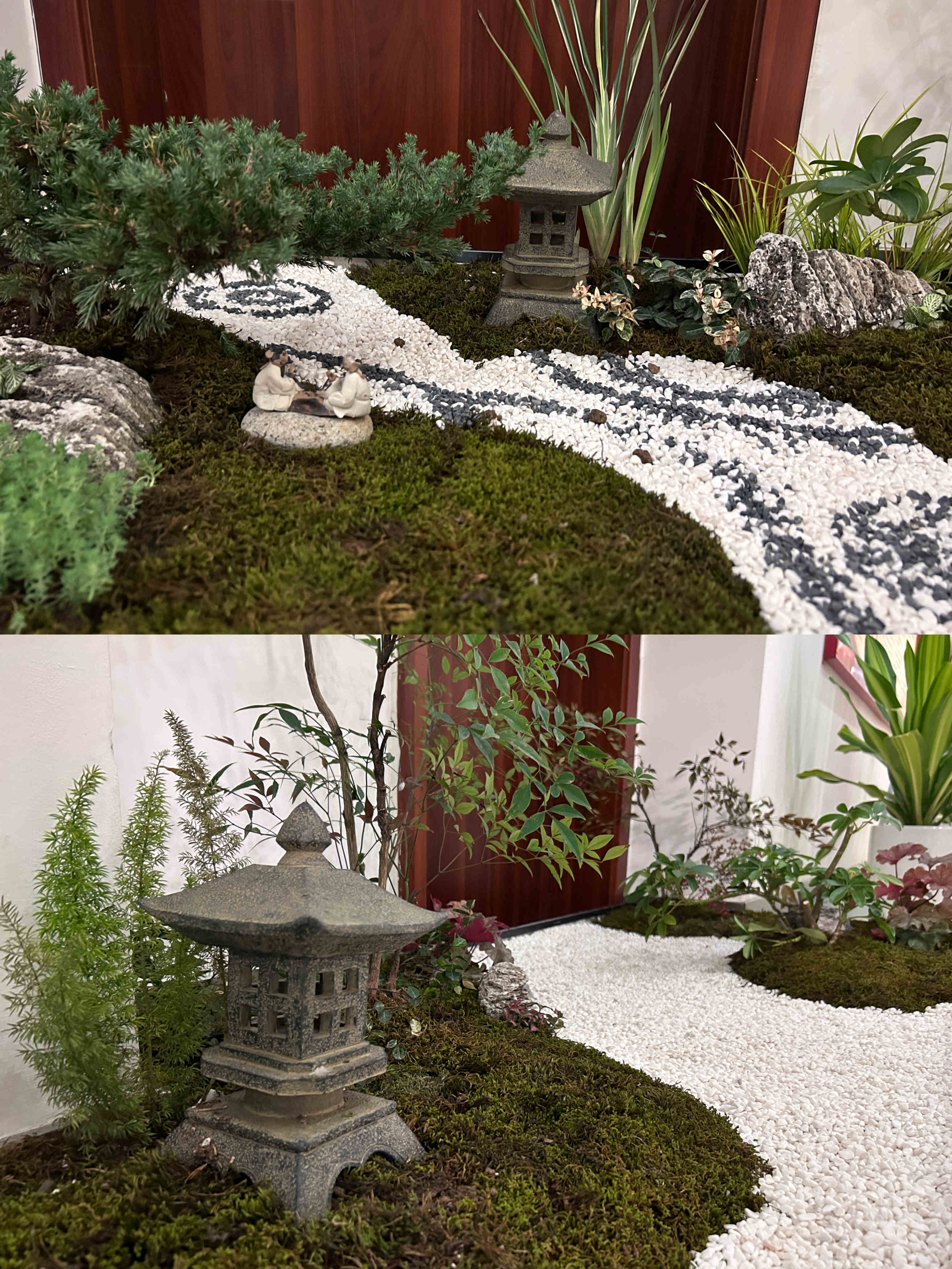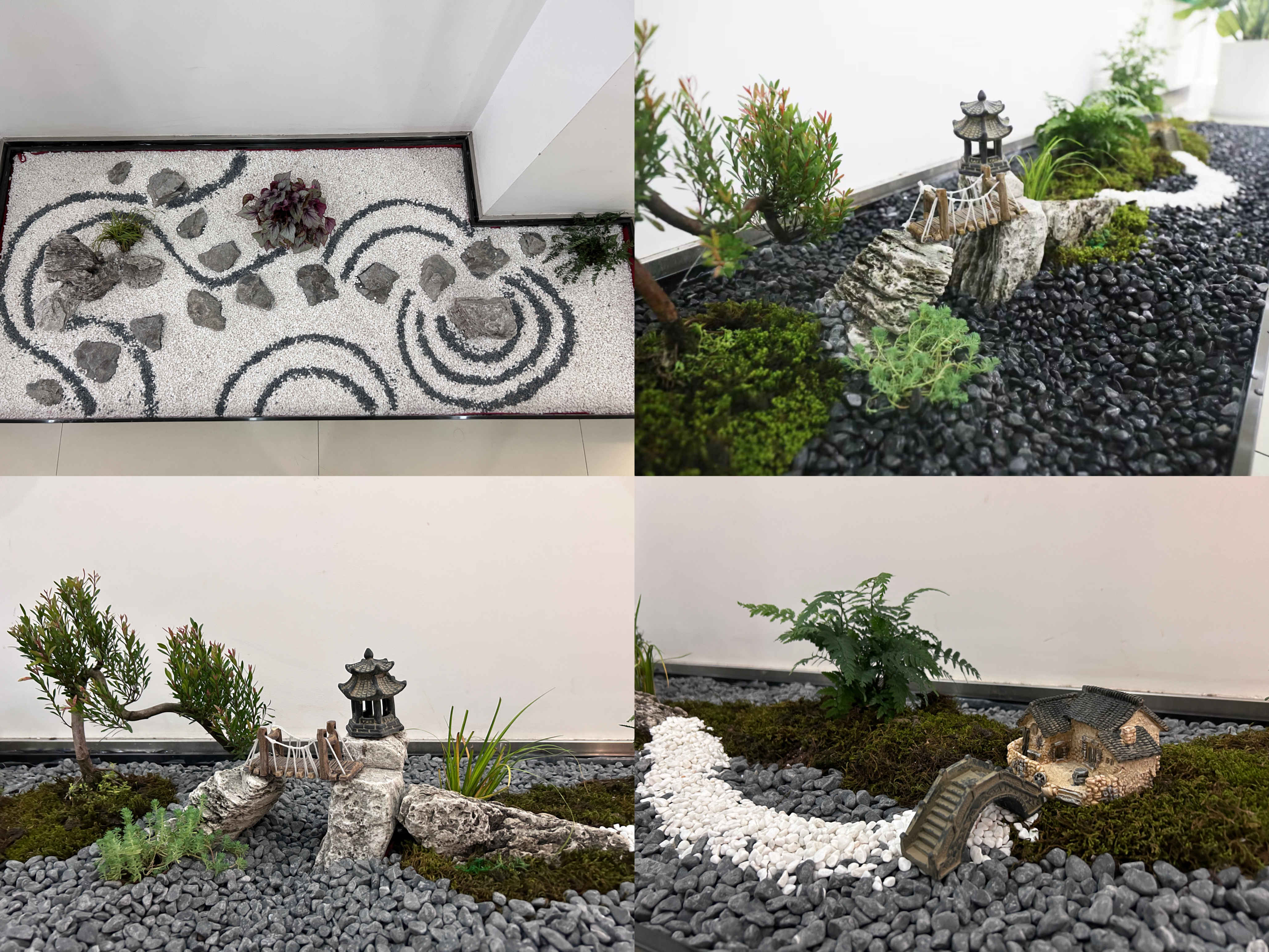 本次大賽共分5個組參賽,全體職工通過抽簽進行分組和選取場地。大賽第一階段,各小組積極討論方案設(shè)計、選擇造景材料;大賽第二階段,各小組充分發(fā)揮自己的動手能力,從基層處理、放線布局、掇山理石、堆坡造型到植物栽植、修剪成型,工完場清,每個過程都專注而有條理。選手們各顯身手、較好地利用了山石紋理和形態(tài)、植物的形色進行創(chuàng)作,完成的作品主題突出、構(gòu)圖優(yōu)美、意境深遠,用“以小見大”的山水園林意境展現(xiàn)興綠園林人對開拓公司美好征程的雄心壯志。