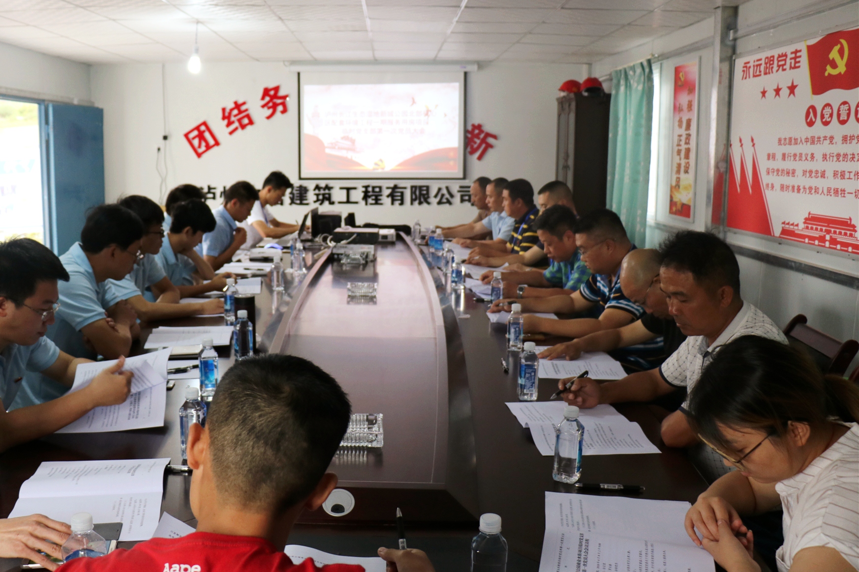 6月8日,按照市政公司項(xiàng)目臨時(shí)黨支部籌備組統(tǒng)一部署,長濕公園商業(yè)水街項(xiàng)目、機(jī)場路延長線項(xiàng)目、第二醫(yī)教園區(qū)項(xiàng)目共13名流動(dòng)黨員齊聚一堂召開項(xiàng)目臨時(shí)黨支部第一次全體黨員大會(huì),標(biāo)志著項(xiàng)目臨時(shí)黨支部正式掛牌成立。