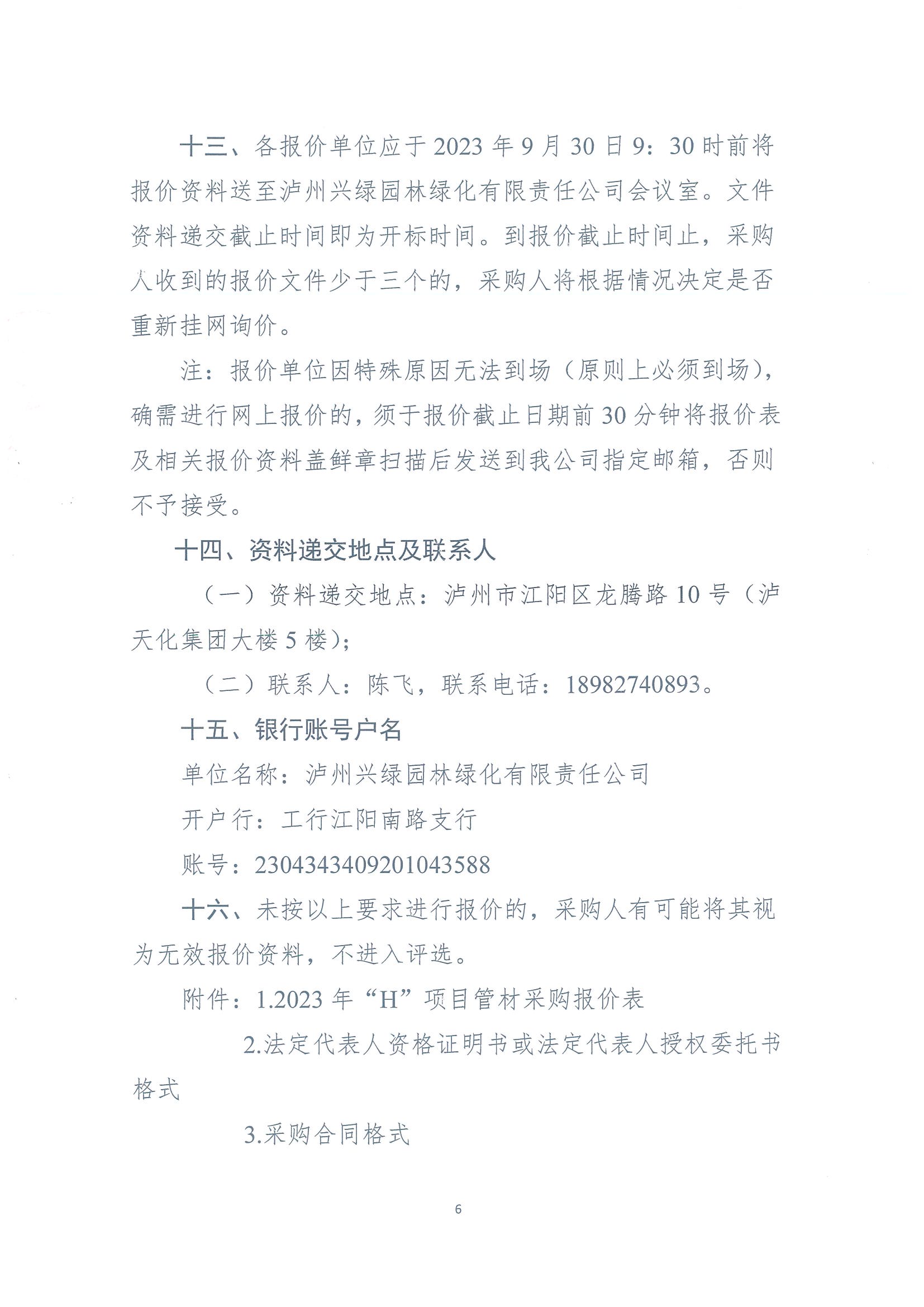 2023年“H”項目管材采購詢價公告