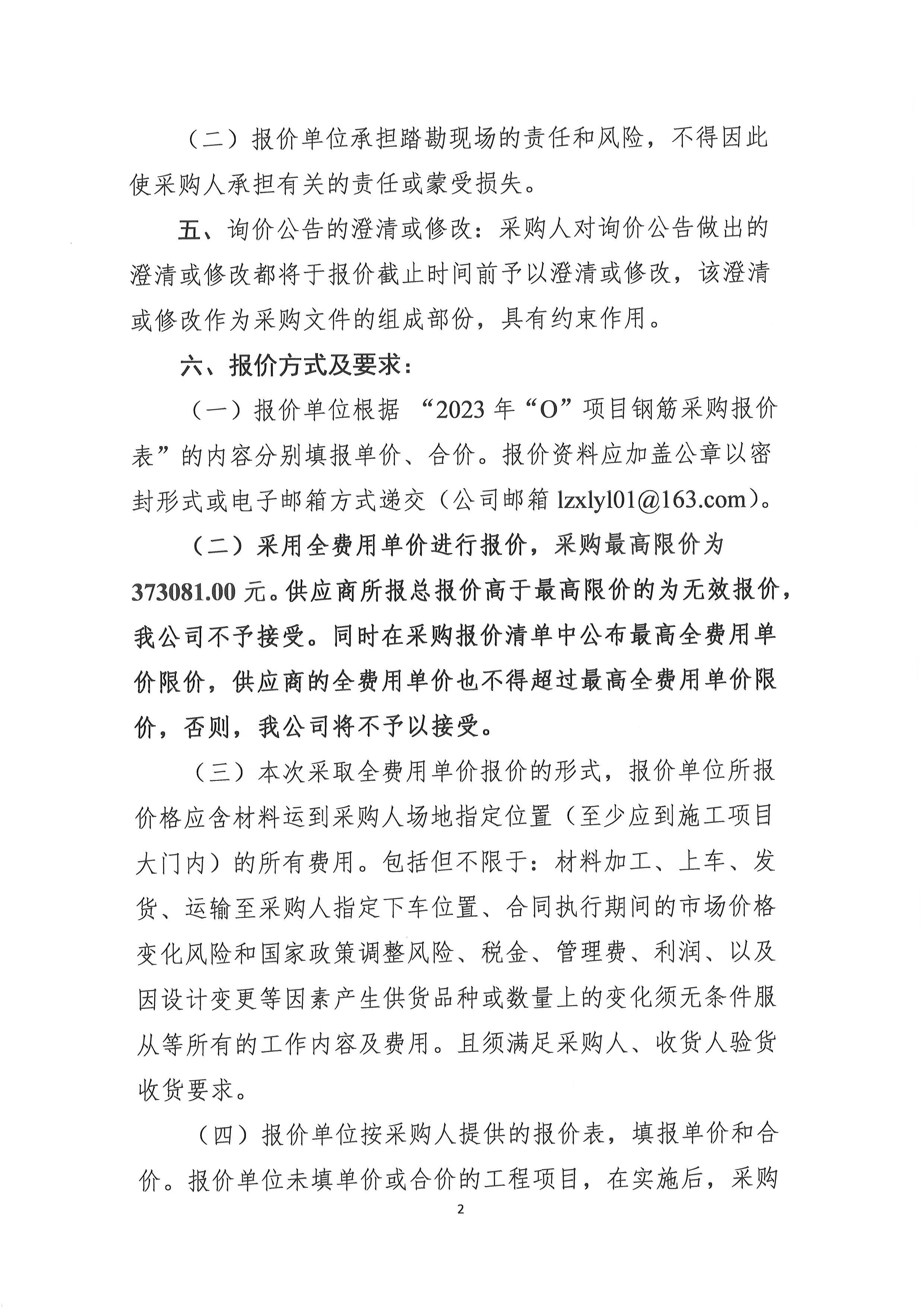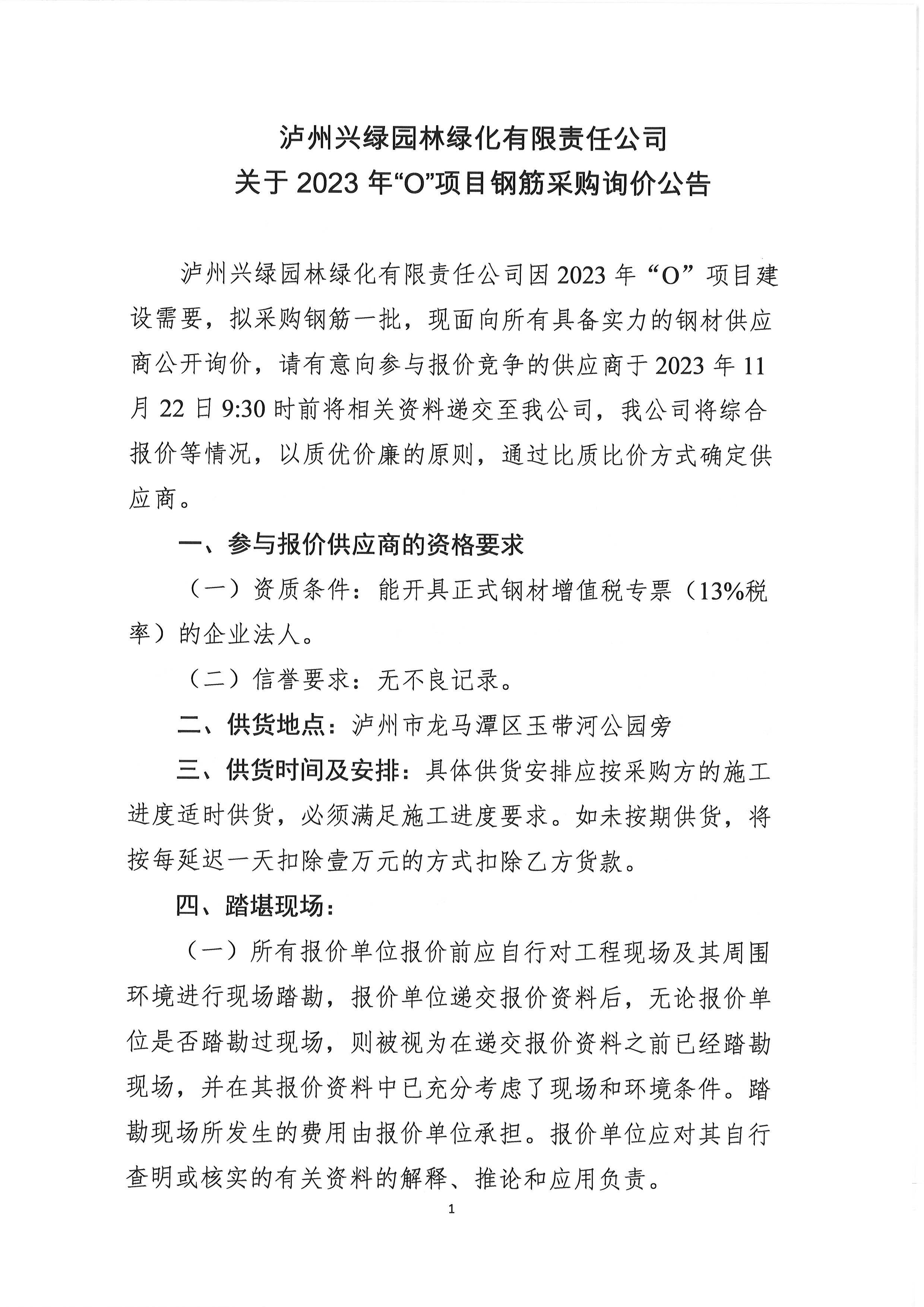 2023年“O”項(xiàng)目鋼筋采購(gòu)詢價(jià)公告