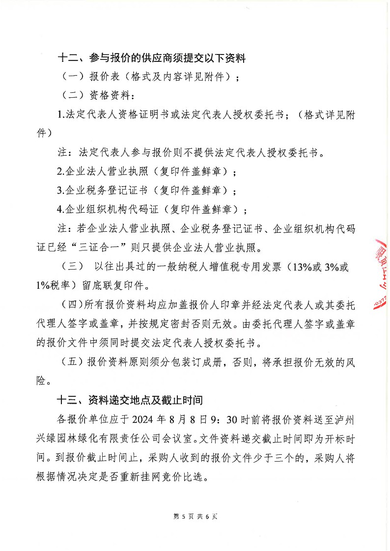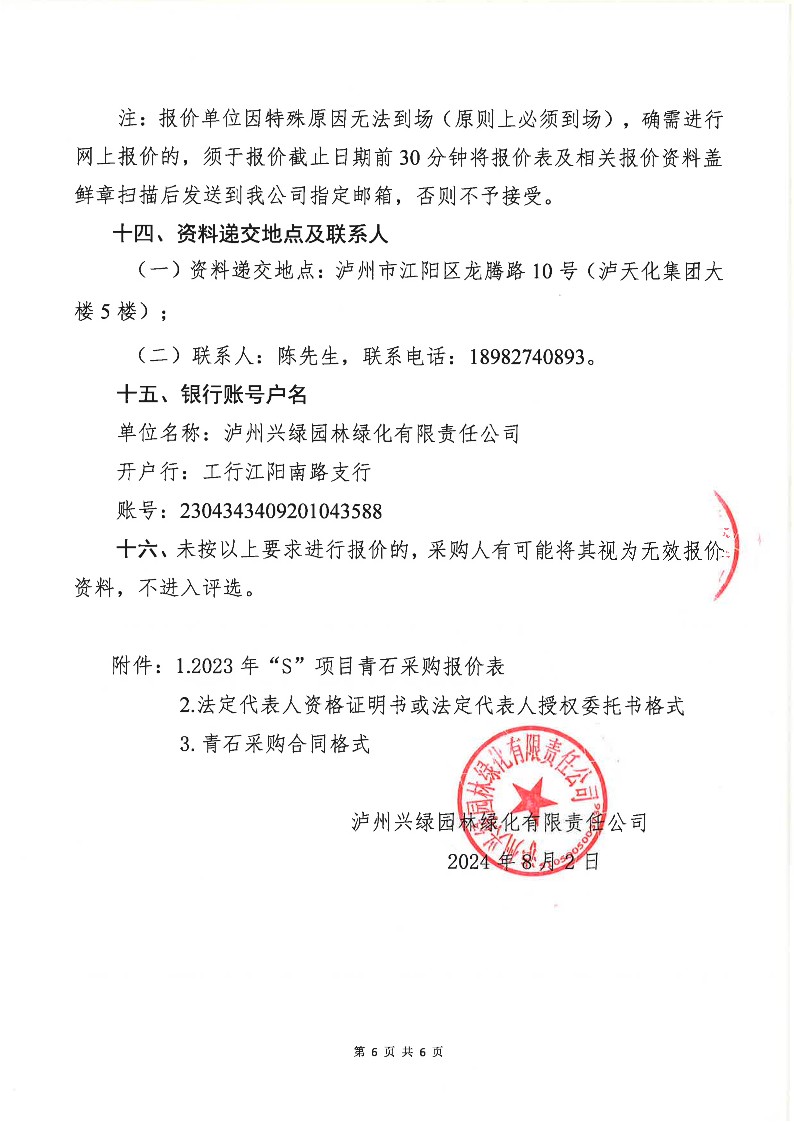 瀘州興綠園林綠化有限責任公司關于2023年“S”項目青石采購詢價公告