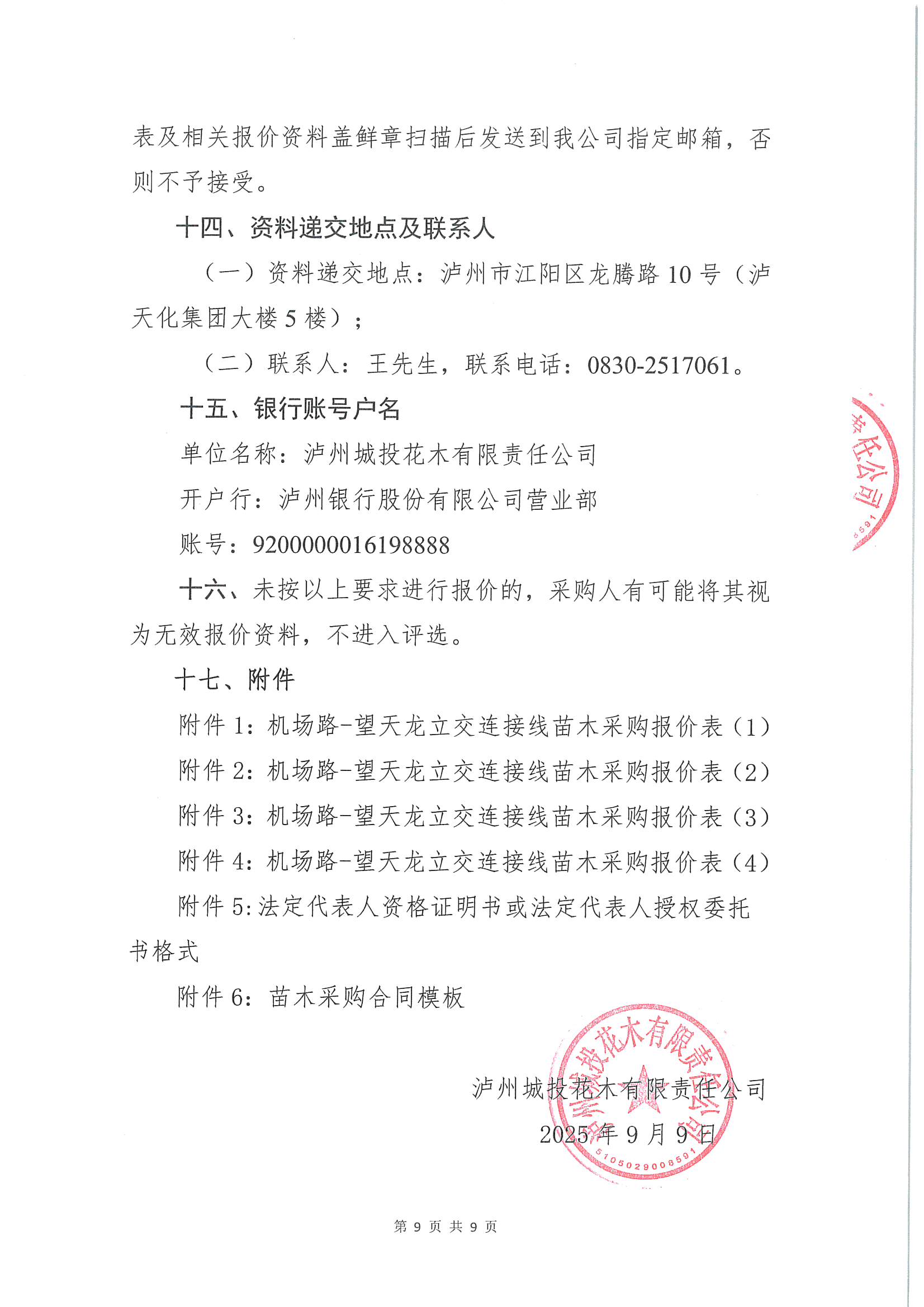 瀘州城投花木有限責(zé)任公司關(guān)于維護部機場路-望天龍立交連接線苗木采購詢價公告
